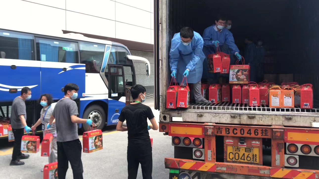 本輪疫情一開(kāi)始,我們就啟動(dòng)了生活物資和抗疫物資的儲(chǔ)備。但在3月27日那個(gè)夜晚,當(dāng)數(shù)千人星夜趕回公司時(shí),依然有部分員工的休息條件異常艱苦。在后勤團(tuán)隊(duì)的努力下,這一情況很快得到了改善,睡袋、行軍床、氣墊床、折疊床等寢具不斷升級(jí)換代,還有部分員工住進(jìn)了創(chuàng)新園宿舍和康橋基地宿舍。食品的供應(yīng)也越來(lái)越豐富,青團(tuán)、粽子等美食沒(méi)有缺席傳統(tǒng)節(jié)日,西瓜、荔枝等時(shí)令水果如約而至,韭菜盒子、康橋小龍蝦等則成為了大家心心念念的網(wǎng)紅美食。供應(yīng)商、客戶和合作伙伴也紛紛送上了蔬菜、日用品、抗疫物資和藥物。集團(tuán)各級(jí)工會(huì)為大家提供了零食、衣物和日用品,還為駐廠員工的家屬、居家員工安排了蔬菜禮包。隊(duì)伍龐大的志愿者在物資搬運(yùn)、分發(fā)等工作中發(fā)揮了重要作用,特別是上百名TONY老師,為駐守員工完美解決了“頭等大事”!
